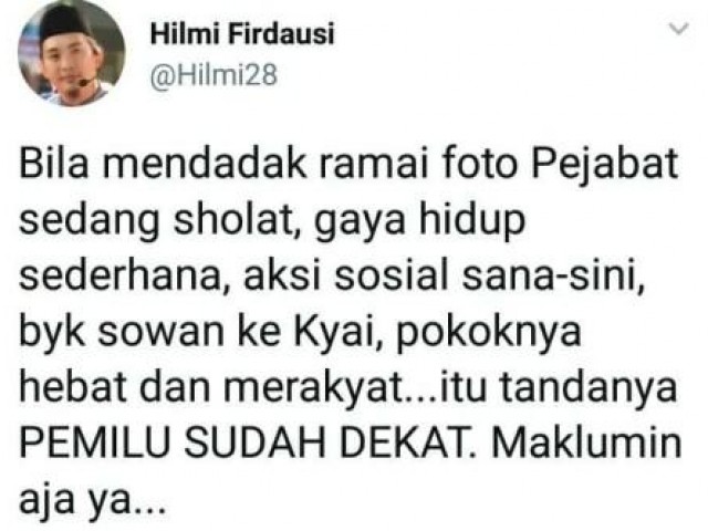 Oleh sebab itu, jangan tertipu orang-orang yang pamer shalatnya dan keshaihan saat dekat pemilu. Wallahu A’lam. [PurWD/voa-islam.com]