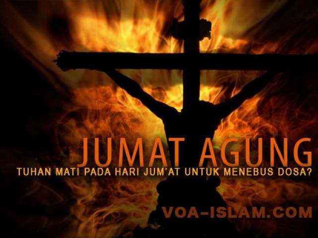 JUM'AT AGUNG (Good Friday) adalah hari yang istimewa bagi umat kristiani, yang jauh lebih agung daripada hari Jum’at biasanya. Mereka meyakini bahwa pada hari Jum’at Agung itulah Yesus yang adalah penjelmaan Tuhan itu menghembuskan nafasnya yang terakhir di atas gantungan tiang salib untuk menebus dosa manusia. Pada kalender Masehi tahun ini, hari Jum’at Agung itu jatuh pada tanggal 6 April. Pada kalender nasional, tanggal ini berwarna merah karena hari libur nasional dengan penjelasan “Hari Wafat Yesus Kristus” atau “Hari Wafat Isa Almasih.”