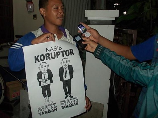 Semakin membuat rakyat muak dengan tingkah laku para pejabat negeri ini. Dan baru-baru ini di Semarang, tepatnya hari selasa(10 /12/2013)  jam 20.00wib,  Jama’ah Ansharut Tauhid (JAT) Semarang bersama Para pemuda yang masih ada kepedulian dengan kondisi negerinya yakni LUISS (Laskar Umat Semarang), PIS (Pemuda Islam Semarang) membuat sebuah aksi perlawanan yang diberi tema “100 Poster Perlawanan Umat Untuk Koruptor”.