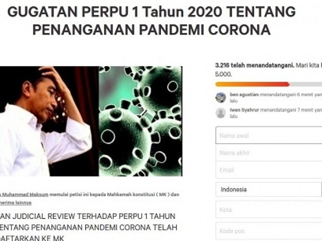 Di tengah wabah corona Presiden menerbitkan Perppu No 1 tahun 2020. Perppu ini kini digugat oleh banyak pihak ke Mahkamah Konstitusi. Di antara pasal pasal kontroversial maka Pasal 27 lah yang dinilai paling bermasalah.
