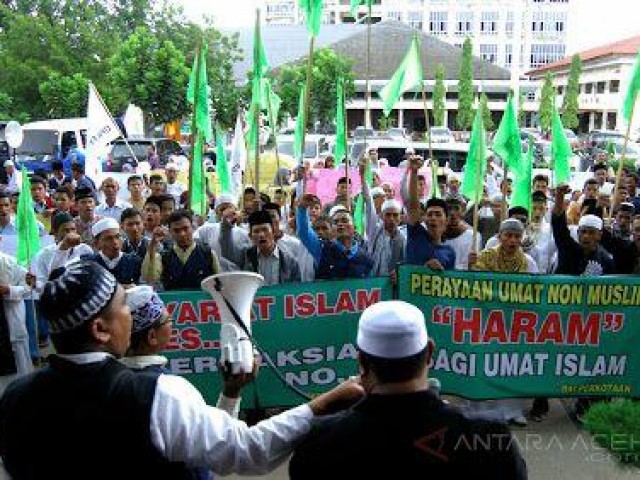 JAKARTA (voa-islam.com) - Bermula dari seratusan massa Ormas dan OKP Islam serta siswa sejumlah SMA di Banda Aceh, berunjuk rasa ke Balai Kota Banda Aceh. Mereka mendesak Pemerintah Kota (Pemko) Banda Aceh tidak memberi izin kepada siapapun yang ingin melakukan perayaan tahun baru 2014 Masehi, ungkap Serambi, di medio Desember 2013.