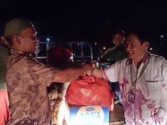 Alhamdulillah serah terima bantuan bagi korban banjir terisolir pada daerah miskin ini dapat dilaksanakan ditengah minimnya pencahayaan akibat mati lampu.