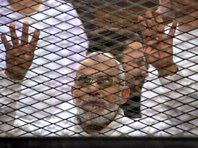 Tergugat yang menantang seluruh proses peradilan, sambil membaca al-Quran dan membuat mengangkat ‘empat jari’ yang menjadi lambang perlawanan Ikhwan terhadap tindakan represif negara .