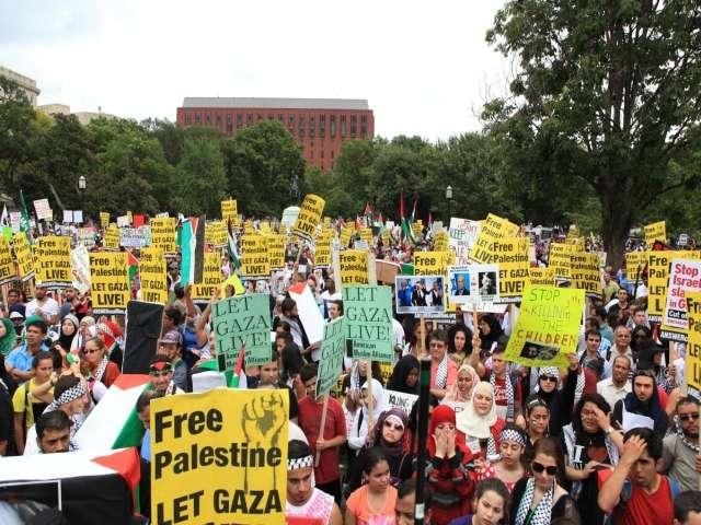 "Free Palestine, biarkan Gaza hidup," teriak ribuan demonstran di luar Gedung Putih pada hari Sabtu.Aksi itu dipimpin oleh 'Koalisi Anti-Perang', koalisi dari organisasi-organisasi Muslim-Amerika termasuk Dewan Hubungan Amerika-Islam, Muslim Amerika Alliance, New York Muslim, Dana Sah Amerika, dan Lingkaran Islam Amerika dUtara. Para demonstran datang dari berbagai kota dan negara-negara bagian dari seluruh AS