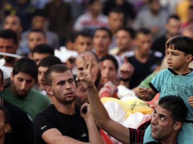 Ribuan rumah di Jalur Gaza hancur atau rusak dalam pertempuran Israel-Palestina yang paling dahsyat sejak 2000-2005. PBB telah menunjuk sebuah panel untuk menyelidiki kemungkinan kejahatan perang. Pusat Hak Asasi manusia untuk Palestina mengatakan 540.000 orang telah mengungsi di Jalur Gaza.