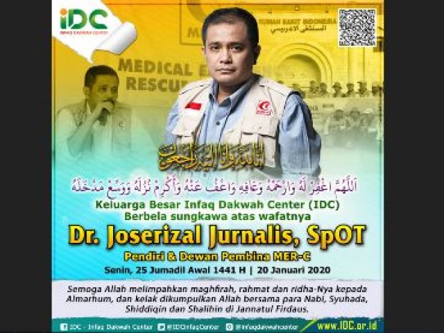 Dr. Joserizal Jurnalis Sp OT. Seorang aktifis kemanusiaan. Kini, ia telah menghadap Allah usai mengakhiri kontrak takdir dunianya di rumah sakit Harapan Kita. Tepat jam 00.38 WIB. Berpulang ke Sang Pencipta di usia muda 56 tahun. Terhitung sejak 11 mei 1963 ia dilahirkan sampai 20 Januari 2020.