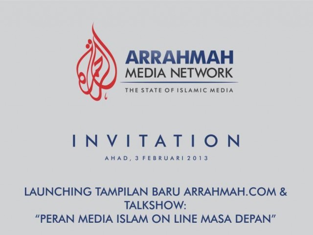 Kami Arrahmah Media Network mengundang Antum untuk menghadiri Launching Redesign “wajah” dan logo baru Arrahmah.com serta Talkshow: “Peran Media Islam Online Masa Depan”.