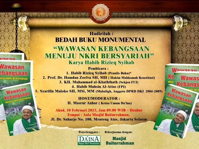 Hadirilah Bedah Buku Monumental "Wawasan Kebangsaan Menuju NKRI Bersyariah" Karya Habib Rizieq Syihab