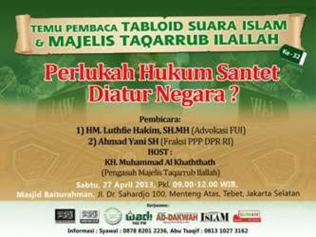 Bersama ini kami mengundang Bapak/Ibu/Sdr/i untuk menghadiri acara MTI-TPSI Ke-32 bertema “Perlukah Hukum Santet Diatur Negara?" yang insya Allah akan diselenggarakan pada: