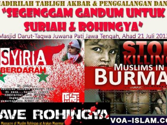 (voa-islam.com) – Hadir dan ikutilah Tabligh Akbar bertajuk “SEGENGGAM GANDUM UNTUK SURIAH DAN ROHINGYA” sekaligus Penggalangan Dana untuk saudara-saudara muslim kita yang saat ini sedang mengalami penindasan dan pembantaian dari kaum Kuffar baik di Suriah dan di Rohingya Myanmar.