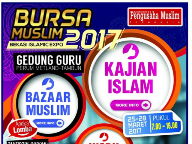 Sisihkan waktu anda dan kunjungi Bursa Muslim Bekasi, tanggal 25 - 28 Maret 2017 di Gedung Guru, Kompleks Metland Tambun – Bekasi.
