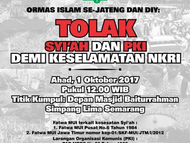 Kami dari Forum Umat islam Semarang (FUIS) mengalang ormas sejateng dan DIY untuk merapat dalam "Aksi Bela Islam" Tolak Syiah dan PKI demi keselamatan NKRI