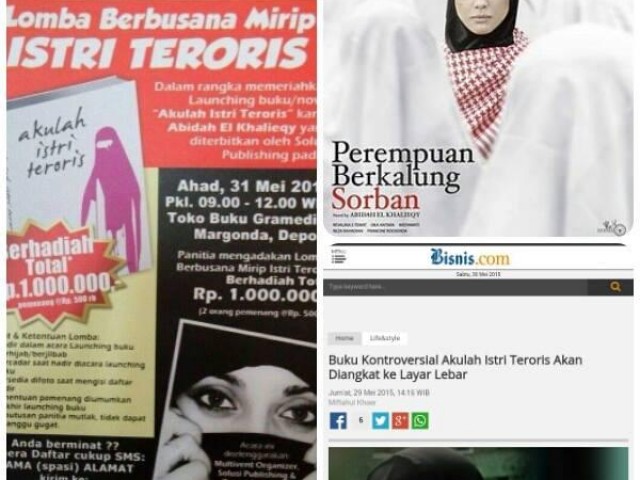 Test the water, ketika peluncuran bukunya dicuekin, akhirnya ia membuat lomba pendukung untuk promosi buku yg tak kalah menghinanya. Lomba berbusana ala istri teroris, yang hadiah utamanya 'hanya' sejuta. Dan sepertinya, reaksi sebagian umat Muslim pada lomba ini pun, masih bisa bisa dibilang terlalu kalem untuk sebuah negeri yang mayoritas muslim. Hanya sedikit yg gerah. Jadi, mungkin kita tinggal menunggu filmnya.