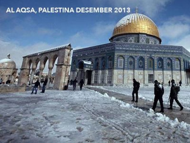 Salju juga terlihat Mesir hingga komplek Masjidil Aqsa di Palestina, seperti terlihat pada foto dibawah ini, seorang pemuda berwudhu dengan menggunakan air dingin bersalju dekat Masjid Dome of The Rock yang berkubah emas.