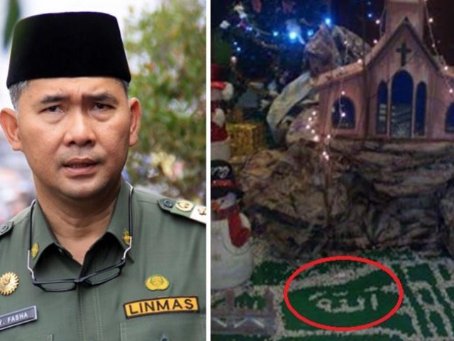 Warga memprotes karena tidak sepantasnya ada lafaz Allah dalam hiasan Natal. Apalagi jika diletakkan di bawah, yang bisa menyinggung umat Islam.