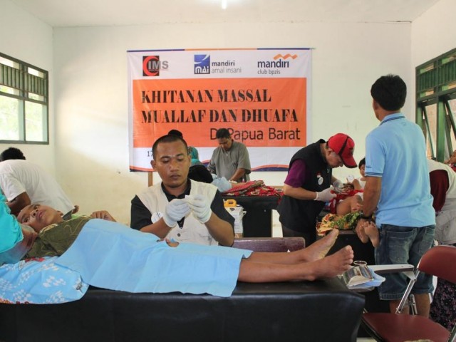 SORONG (voa-islam.com)--Islamic Medical Service (IMS) menggelar serangkaian kegiatan sosial di pedalaman Papua pada Sabtu-Ahadn, 16-17 Januari 2015. Kegiatan sosial yang diselenggarakan di Madrasah Ibtidaiyah Hidayatullah Sorong ini meliputi penyuluhan kesehatan, pengobatan dan khitanan massal bagi para mualaf.
