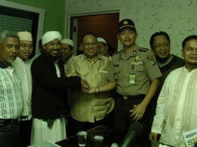 BEKASI (voa-islam.com) - Rencana aksi sejuta massa umat Islam se-Bekasi yang dijadwalkan hari Senin (14/6/2010) untuk mendemo Walikota Bekasi dibatalkan. Pembatalan ini dilakukan setelah Mochtar Mohamad bersedia menandatangani empat kesepakatan yang diajukan perwakilan ormas-ormas Islam se-Bekasi.