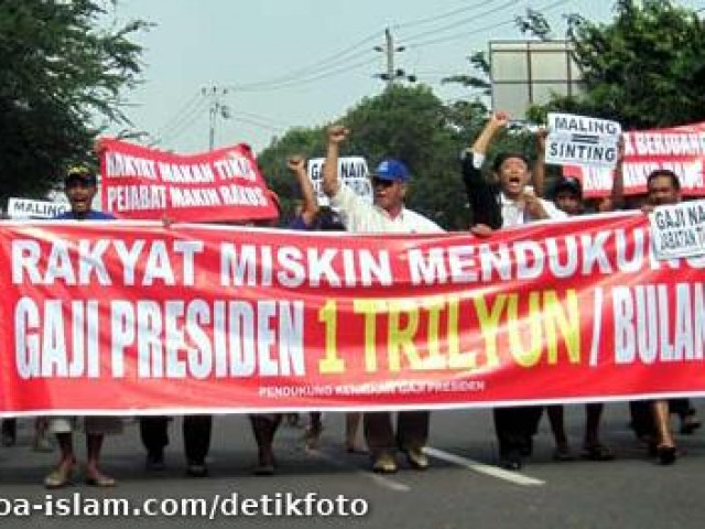 Sebagai sindiran yang menohok, kelompok tersebut justru memberikan dukungan agar gaji presiden dinaikkan menjadi Rp 1 triliun per bulan. Namun sebagai syaratnya, SBY harus memenuhi lima syarat yang diajukan.