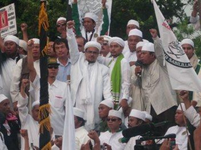 Bekasi (voa-islam) - Menurut pandangan FPI, Indonesia diakui atau tidak, sebelum merdeka atau setelah merdeka, Indonesia sudah menjadi negara Islam, hanya belum kaffah. Buktinya, mayoritas penduduk Indonesia muslim, Presiden dan Wakil Presidennya pun muslim hingga saat ini. Demikian dikatakan Ustadz Awit dari DPP Front Pembela Islam (FPI) dalam sebuah Tabligh Akbar di Bekasi.
