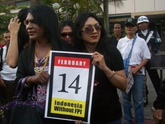 JAKARTA (VoA-Islam) – Kaum fasik Jaringan Islam Liberal (JIL) atau sebut saja Jaringan Iblis Laknatullah (JIL) kemarin, Selasa (14/2) berkumpul di Bunderan Hotel Indonesia pukul 16.00 WIB. Jumlah mereka segelintir saja, hanya kumpulan makhluk bertatto, waria, homo dan lesbian serta para penghujat Islam.