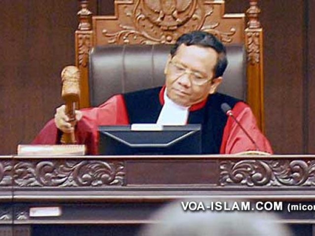 "Pokok permohonan beralasan menurut hukum untuk sebagian. Mengabulkan permohonan para pemohon untuk sebagian," kata Ketua Majelis Hakim Konstitusi, Mahfud MD, saat membacakan putusan, di ruang sidang MK, Jum'at (17/2/2012).