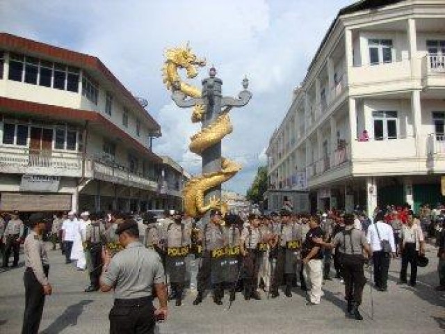 Lalu, Walikota menawarkan , agar membuat tiga patung untuk ketiga etinis, yakni: masyarakat Cina, Dayak, dan Melayu. Namun, tokoh Melayu menolak untuk dibuatkan patung. Suatu ketika terjadilah teror terhadap sejumlah tokoh Melayu Singkawang, toko mereka pun dibakar. Untuk membantu masyarakat Melayu yang diteror, akhirnya FPI mengerahkan massa dari Mempawah. FPI mengingatkan, agar jangan coba-coba mengganggu dan membantai saudara Melayu Singkawang. Sejak FPI dan Polisi turun, situasi pun redam, tidak ada lagi teror di Singkawang.