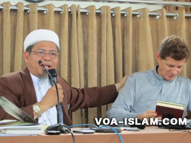 “Mudah-mudahan beliau menjadi mujahidin, insya Allah. Karena beliau musuhnya Amerika,” ucap Amir Majelis Ilmu Ar Royyan, di Masjid Muhammad Ramadhan, Bekasi, Ahad (9/9/2012).