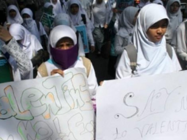 Sejumlah warga Pakitsan turun ke jalan di beberapa kota untuk menentang perayaan Hari Valentine, Kamis 14 Februari, dan memintanya untuk diganti dengan Hari Kesopanan.