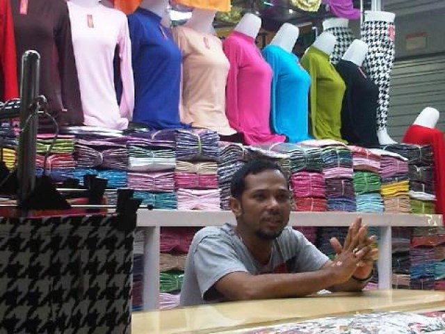 Bicara pasar, Rubiatun juga memiliki pelanggannya sendiri, dan kebanyakan pula dari daerah, seperti Jambi dan Kalimantan. “Kita biasanya update foto mode terbaru lewat bbm, Alhamdulillah pasarnya cepat. Jersey kembang memang banyak peminatnya,” kata Ibu asal Kalimantan ini sudah membuka kiosnya sejak Subuh (setiap Senin-Kamis), dan kalau hari biasa buka pukul 8 pagi.” Bagi Rubiatun, rezeki gak kemana, jalani saja dengan gembira. [desastian]