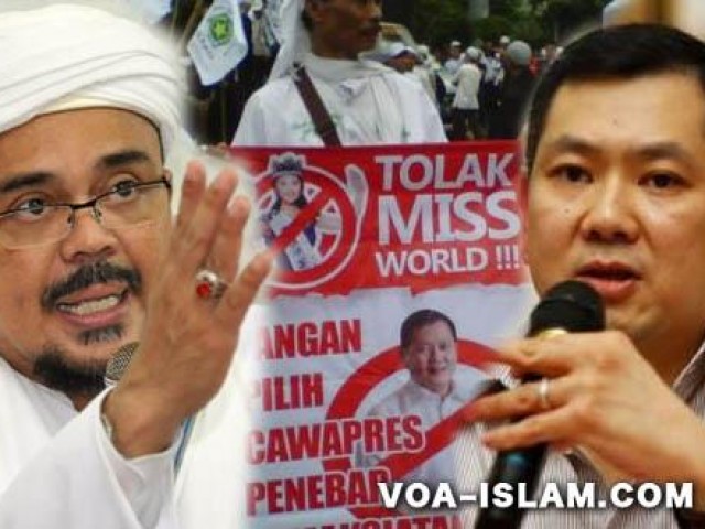 JAKARTA (voa-islam.com) - Front Pembela Islam (FPI) dan Forum Umat Islam (FUI) melaporkan Bos MNC Group Hary Tanoesoedibjo (HT) ke Mabes Polri di Jalan Trunojoyo, Jakarta Selatan, Senin (9/9/2013) terkait pelanggaran hukum dalam acara Miss World.