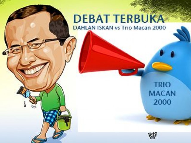 Jakarta (voa-islam) Wah bisa gempar nih Indonesia, mahluk dari negeri twitter @triomacan2000 akan bersanding debat dan menantang buka-bukaan soal korupsi yang dilakukan dengan Dahlan Iskan.