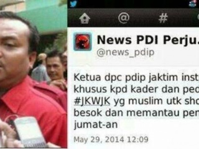 Belum juga kadernya Jokowi menjadi presiden, PDIP sudah mengeluarkan program yang sangat melukai perasaan dan kehormatan dinul Islam, dengan mengawasi khatib Jum’at di masjid-masjid. Apa jadinya kalau kadernya nanti sudah jadi presiden, program-program apalagi yang akan dikeluarkannya dalam rangka menghancurkan Islam. Mungkin nanti kalau kadernya jadi presiden, yang jadi khatib-khatib Jum’at di masjid-masjid itu, semuanya dari kader-kader PDIP.