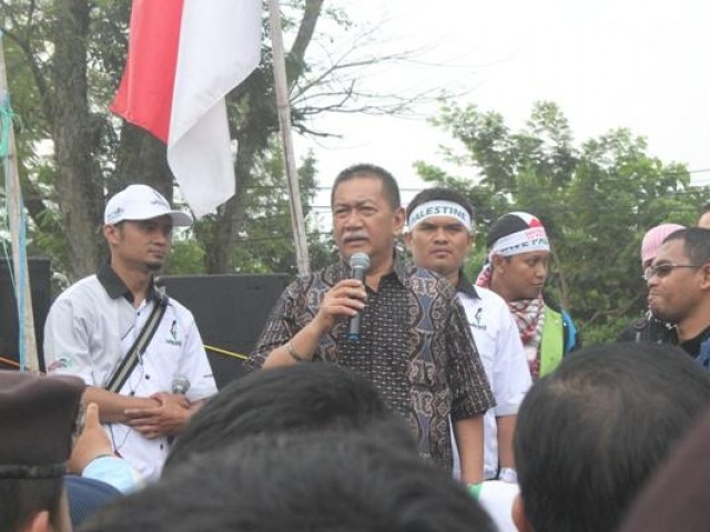 BANDUNG (voa-islam.com) – Wakil Gubernur Jawa Barat, Dedi Mizwar bersedia menemui ribuan massa aksi kaum Muslimin Jawa Barat, dari berbagai elemen Ormas Islam, Lembaga Dakwah Kampus, untuk solidaritas rakyat Gaza, Palestina, yang diserang tentara Zionis Israel penjajah, yang digelar pada Jum’at (11/07). Bahkan Dedi Mizwar juga ikut berorasi.