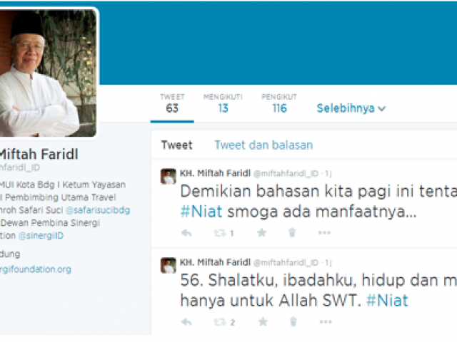 Terinspirasi peluang dakwah yang dapat kian meluas, dengan pemanfaatan jejaring sosial, Ulama kharismatik cum Ketua Umum MUI Kota Bandung, Prof Dr KH Miftah Faridl, merilis akun Twitter resmi @miftahfaridl_ID, Rabu 6 Agustus 2014.