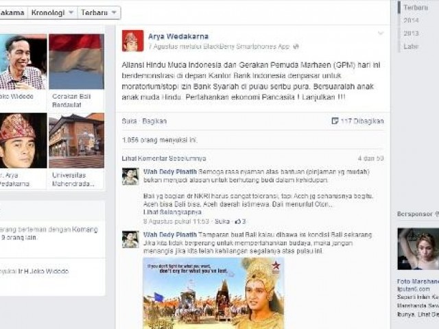 JAKARTA (voa-islam.com) - Arya Wedakarna, anak muda asal Bali kembali membuat sensasi. Pada 7 Agustus 2014 lalu melalui akun facebooknya, mantan model dan cover boy majalah ANEKA itu menulis status yang menyatakan penolakannya terhadap perbankan syariah di Bali.