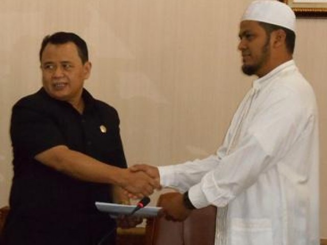Diterima di ruang Baleg, Umar Hasyim, SE selaku Wakil Ketua DPRD dari PAN menjadi penerima Draft Rancangan DSKS tentang Perda Anti Miras. Raperda versi DSKS ini dibuat oleh Tim yang terdiri dari DR. Aidul Fitriciada Azhar, SH., M.Hum., Prof.DR. Adi Sulistiyo, SH.,MA., Joko Sutrisno, SH., Endro Sudarsono, S.Pd., DR. Mu’inudillahi Basri, MA., dan Prof. DR. Dr.H. Zainal Arifin A, Sp.PD.