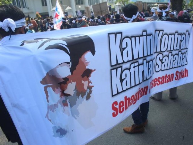 “Maka jika ada ‘Islam’ gadungan seperti Syiah, Ahmadiyah, maka halal untuk disiksa,” ucapnya dengan suara yang lantang dan disambut pekikan takbir dari massa aksi.