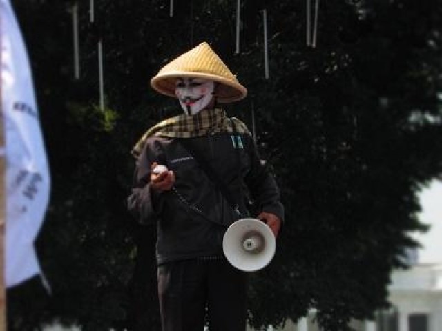 “Ia (Jokowi) hanya berpihak pada kepentingan Asing dan Aseng, bukan masyarakat pribumi,” lanjut orator.