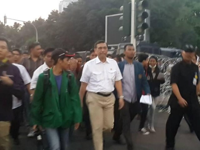 Setelah ditunggu dua hari oleh ribuan mahasiswa, Jokowi tak juga menampakkan batang hidungny, yang bernegoisasi dengan BEM SI adalah Luhut Panjaitan.