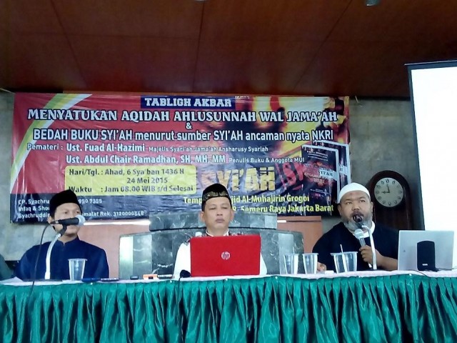 Jakarta (voa-islam.com) - Syiah ancaman nyata bagi kemanusiaan khususnya di Indonesia ungkap Ustadz Fuad al Hazimi dalam bedah buku yang diadakan Jamaah Ansharusy Syariah wilayah Jakarta pada hari Ahad, 24 Mei 2015 di masjid Al Muhajirin Grogol dengan tema "Menyatukan Aqidah Ahlussunnah & Syiah Ancaman Nyata Bagi NKRI".