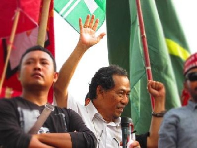 Ia juga tidak hanya disambut teriakan ‘hidup rakyat” dari massa aksi. Para polisi yang mengawal demontrasi pun menyambut beliau dengan sigap dengan membuat pagar pengaman. (Robigusta Suryanto/voa-islam.com)