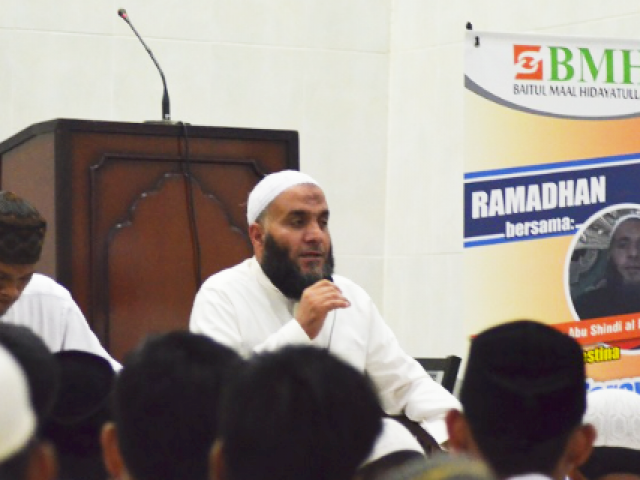 Di hadapan para jama’ah, Syeikh Abu Shindi demikian akrab dipanggil mengucapkan syukur dan terimakasih kepada Baitul Maal Hidayatullah dan Sahabat Al-Aqsha yang telah menginisiasi program Ramadhan bersama Imam Palestina.