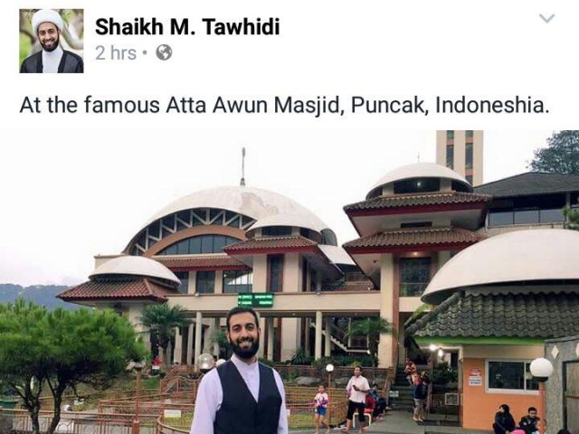 BOGOR (voa-islam.com)--Dalam fans page Facebook M. Tawhidi, tokoh Syiah asal Australia terpasang foto-foto dia tengah berada di beberapa tempat di Indonesia. Foto-foto tersebut terpasang pada Senin (5/10/2015).