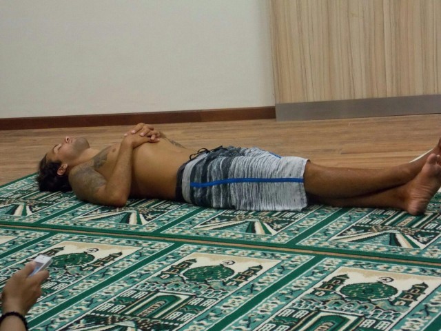 Di sebuah mushola dekat bandara Ngurah Rai, tim RMI melihat seorang laki-laki tanpa mengenakan baju dan badan penuh tato pura-pura tidur di shaf pertama. Dari aromanya, tercium bau minuman keras. Tim juga melihat kaki laki-laki ini kotor. Ia sengaja berbuat demikian untuk menghalangi ummat Islam melaksanakan sholat berjamaah. (sebagaimana foto terlampir).