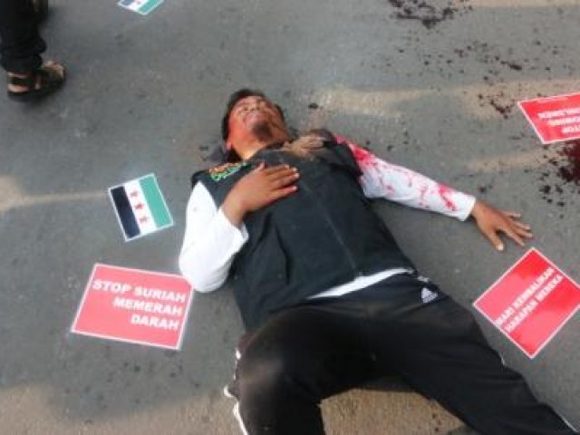 Aksi yang turut dihadiri bakal calon Gubernur DKI Jakarta, Adhyaksa Dault itu juga menggelar teatrikal kekejaman Bashar Assad. Diperankan beberapa relawan dengan berlumuran darah dan luka buatan, seolah menggambarkan rakyat Suriah. (Baca juga: Adhyaksa Dault Dukung Aksi Relawan Peduli Suriah).