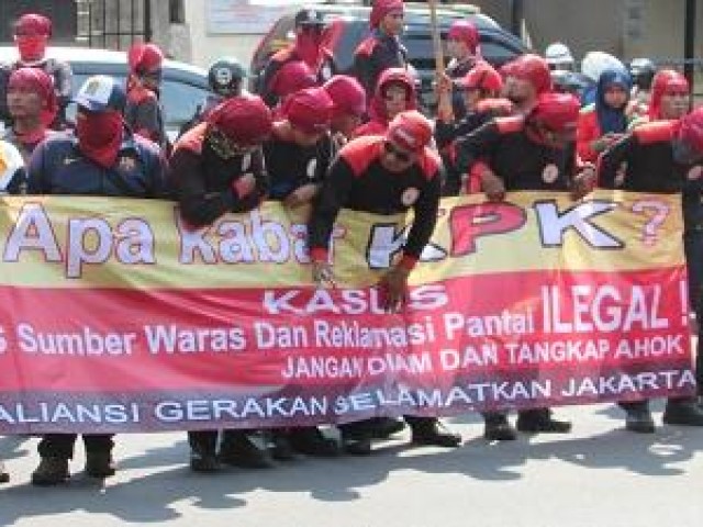 Tuntutan yang sama juga datang dari orator lainnya, yang meminta Ahok segera diusut tuntas. "Pasalnya, sudah terlampau banyak bukti-bukti, misal terkait reklamasi. Jelas sekali itu bukan rakyat, melainkan untuk kepentingan Asing dan Aseng (pengusaha 'hitam')," sampainya.