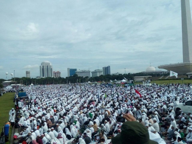 Baru sepatah dua kata menyambutkan sambutan teriakan massa semakin kompak. Kali ini massa serempak berteriak, "Tangkap..tangkap..tangkap Ahok sekarang juga!"