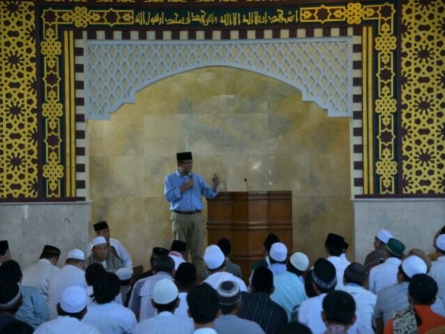 Usai memberikan sambutan dan meminta doa restu ke para jamaah sholat Jumat, Anies kemudian menuju peluncuran bukunya di Gramedia, Matraman. * [Syaf/voa-islam.com]