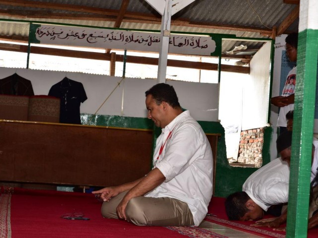Tanpa menunggu lagi, Anies segera menyempatkan mengambil wudhu dan mendirikan sholat sunnah, tahiyatul masjid.