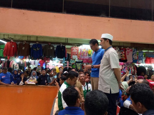 JAKARTA (voa-islam.com)--Calon Wakil Gubernur DKI Jakarta Sandiaga Uno datang dan bertemu dengan para pedagang di pasar tradisional Perumnas Klender, Duren Sawit, Jakarta Timur pada Rabu (8/2).